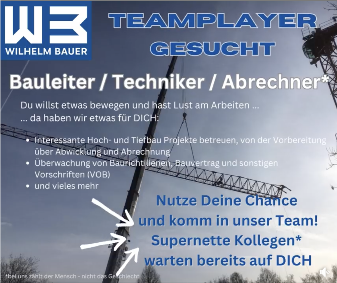 Interesse? Bewirb Dich jetzt unter: info@wilhelm-bauer.eu